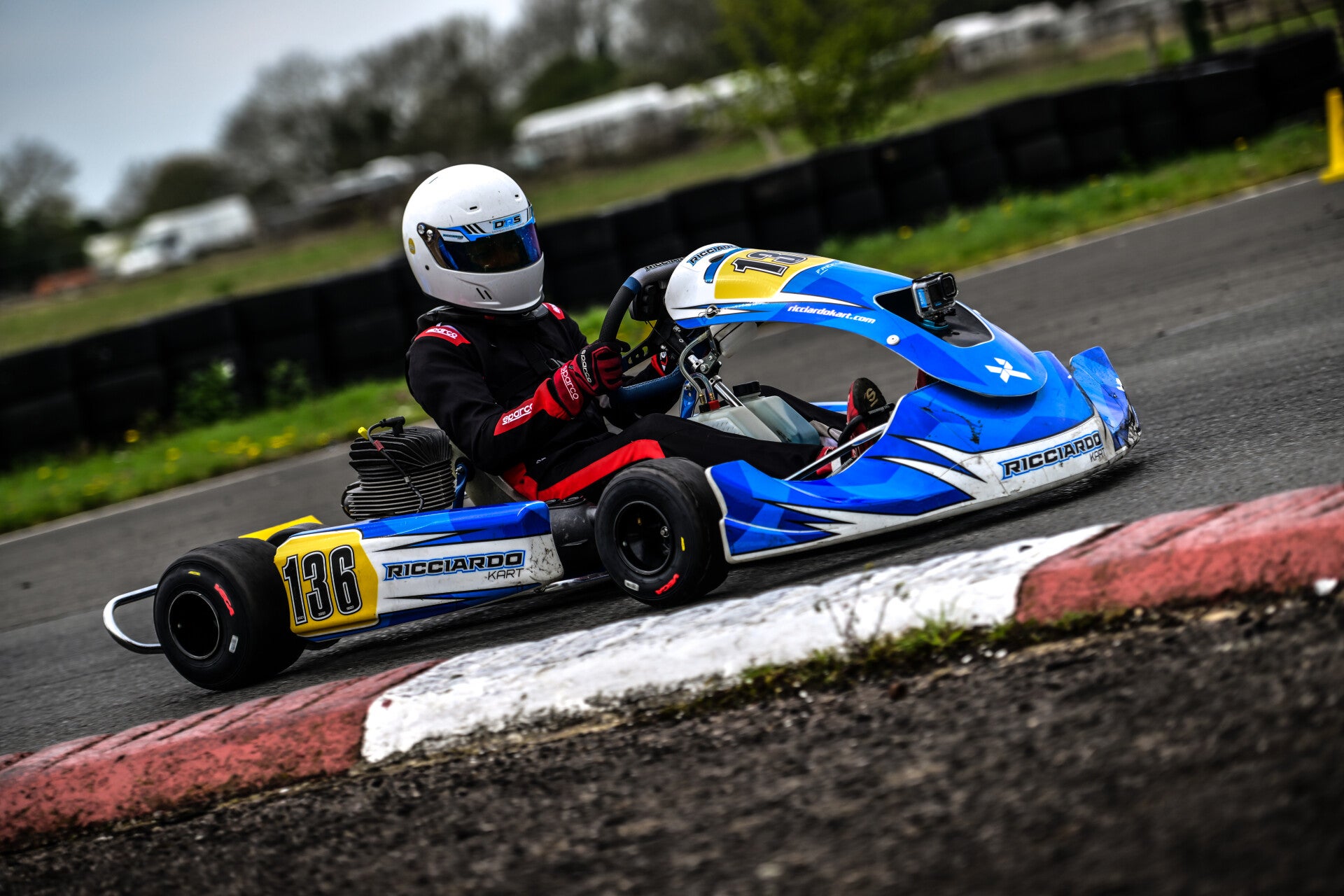 Yesterday was the DRS test day at Shennington, and I was so happy to finally bring out my fresh painted helmet. Rain coming down on and off the whole time which was very annoying as I was hoping to test in the dry after the lunch break. My old kart got trashed last round, so I had to switch to a new kart. It felt weird compared to what I was used to. Still, we were trying our best to find out the right setup for me, trying to figure out where the kart is at its weakest and losing pace which was mainly out of the corners and braking we think. I can't wait until Round 1 which is at Shenington again and hopefully we will be pushing for the win.